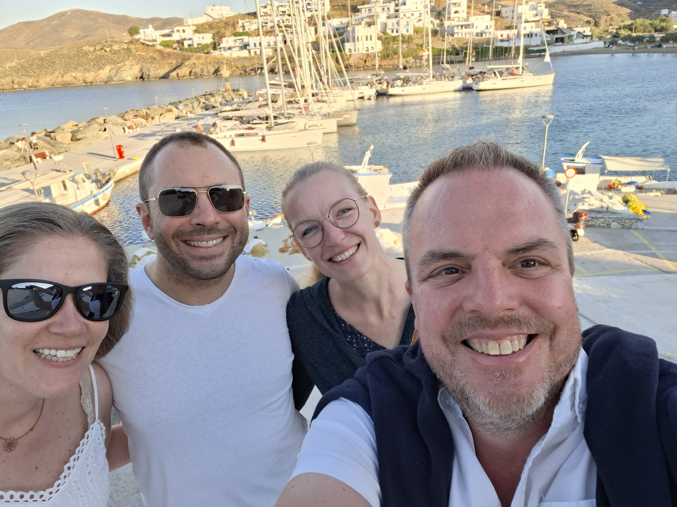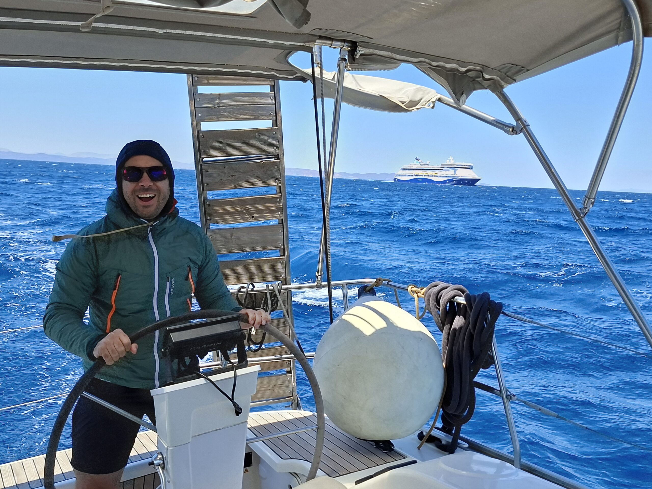 Ankunft in Athen und Übernahme des Boots. Vor Ort erfahren wir überraschend, dass wir nicht – wie gebucht und bezahlt – die Beneteau Oceanis 50 erhalten, sondern stattdessen eine qualitativ deutlich schlechter verarbeitete Bavaria 51. Zwar ist die Bavaria ein jüngeres Modell, doch die minderwertige Bauqualität, der intensive Charterbetrieb und mangelnde Wartung sorgen für zahlreiche „Herausforderungen“ während der gesamten Woche. Auch mussten wir das Depot (sinnloserweise) in Bar bezahlen – wissen die Götter warum.