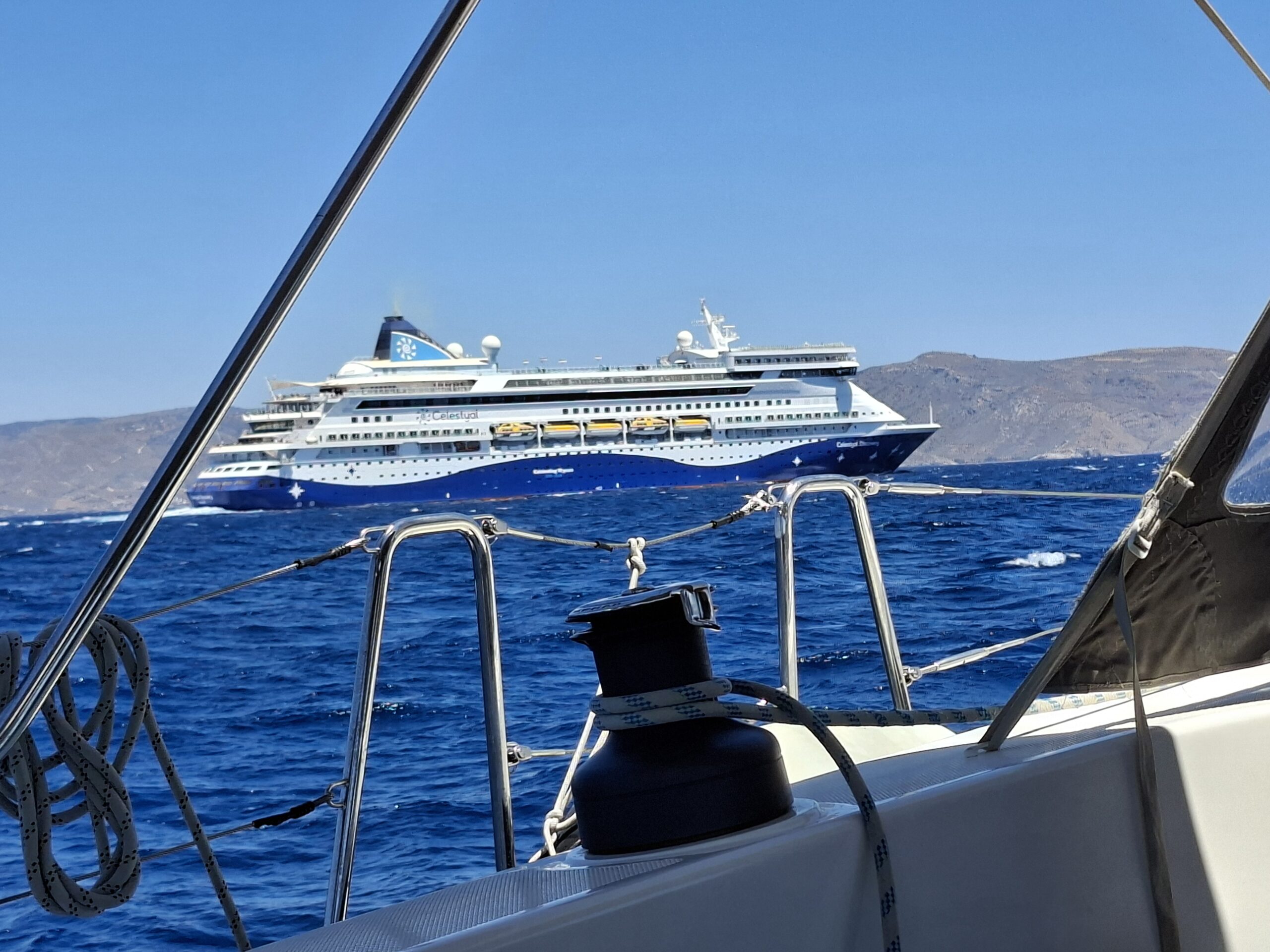 Lange Segelstrecke zurück in Richtung Festland bis zum Poseidon-Tempel bei Kap Sounion. Das Ankerfeld ist sehr voll, aber wir verbringen einen ruhigen und gemütlichen Abend vor beeindruckender Kulisse.