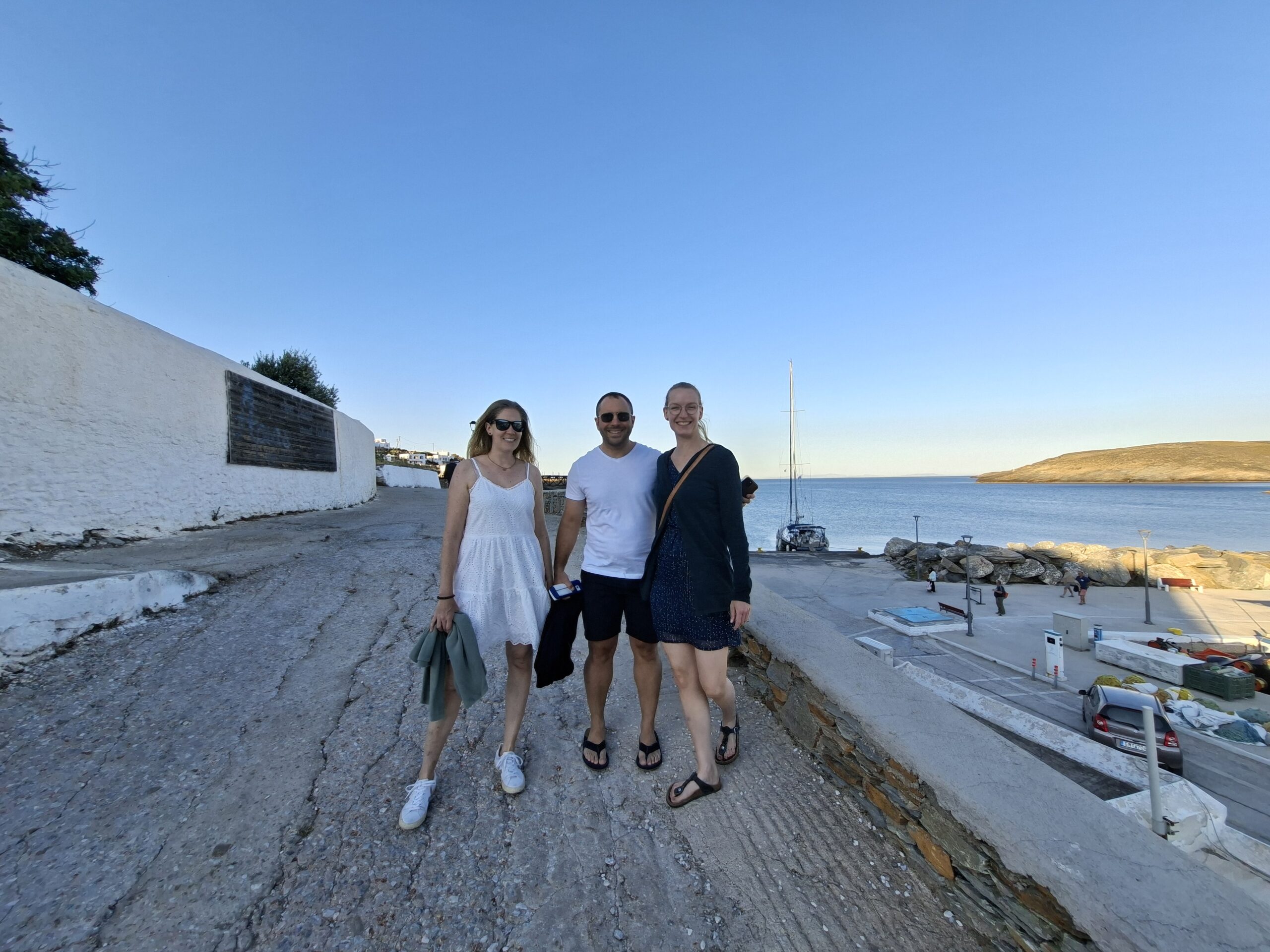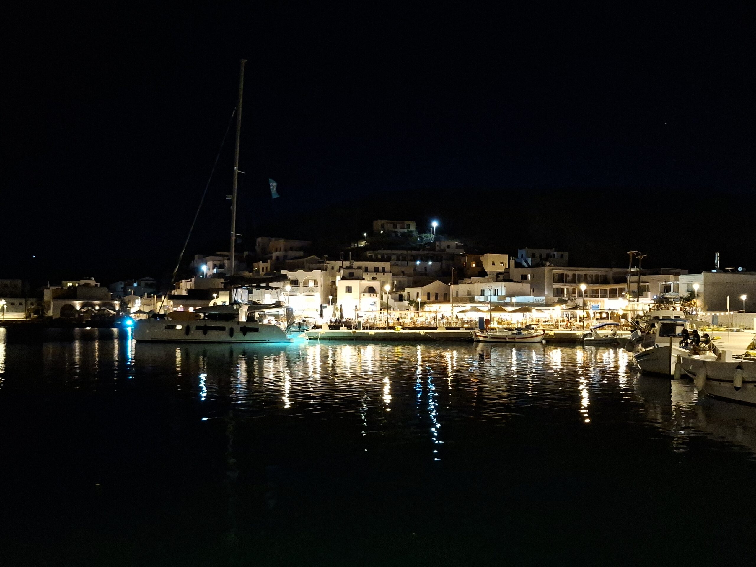 Wir segeln um die Insel zur Bucht mit den warmen Quellen in Loutra. Dort ergattern wir einen Platz am Steg (Med Mooring) mit Strom und Wasser – für nur 8 Euro pro Nacht (ein unschlagbarer Preis im Vergleich zu den teuren Liegegebühren in Kroatien). Das Städtchen ist traumhaft schön, das Essen im Restaurant fantastisch. Am Morgen holen wir frisches Gebäck vom Bäcker und genießen ein Bad in den heißen Quellen direkt am Strand.